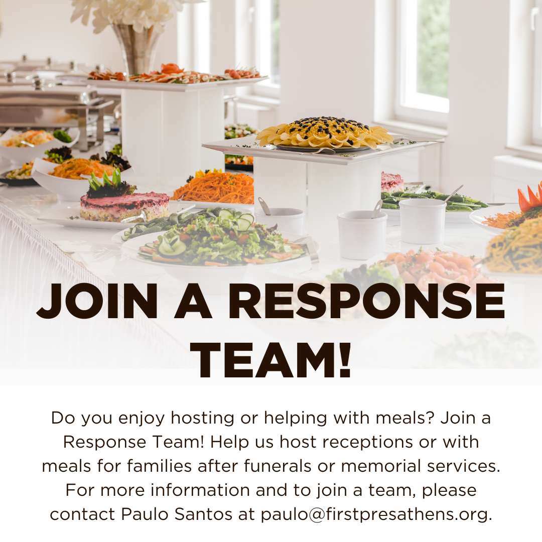 Do you enjoy hosting or helping with meals? Join a Response Team! Help us host receptions or with meals for families after funerals or memorial services.